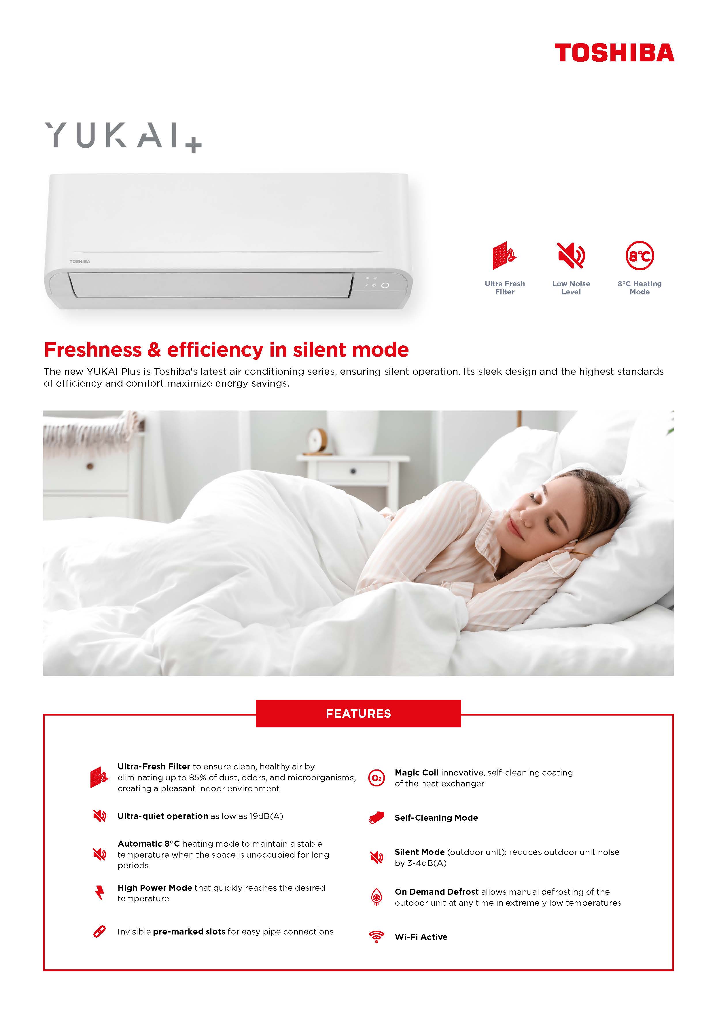 Инвертер клима уред Yukai+ претставува совршен влез во светот на климатизацијa. Овој модел од Toshiba е опремен со економичен инвертер компресор и сите функционалности на кои се навикнати корисниците на премиум бренд како Toshiba.