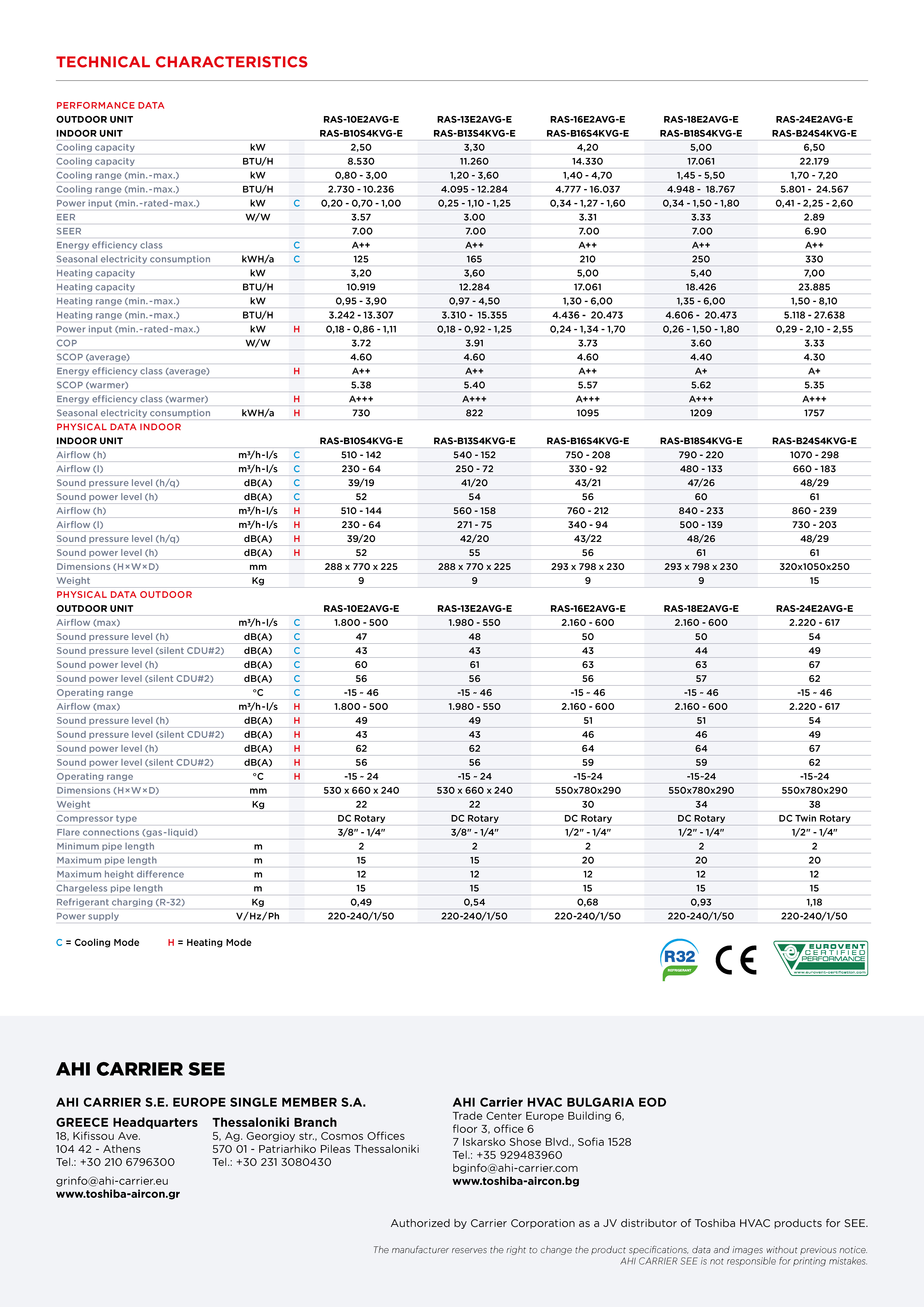 Шифра: RAS-B24S4KVG-Е / RAS-24E2AVG-E
